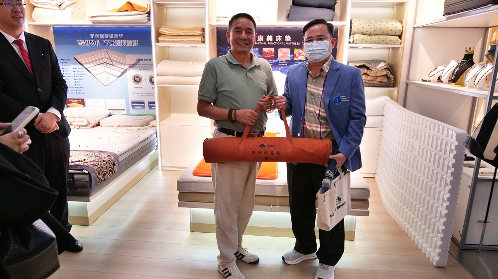 交流活动中,严安雄董事长亲自讲解了东升国际家居的磁疗技术原理及产品系列。通过现场实验演示,分别针对功能护具、保健床垫、保健服饰、功能饰品等产品进行了详细介绍。